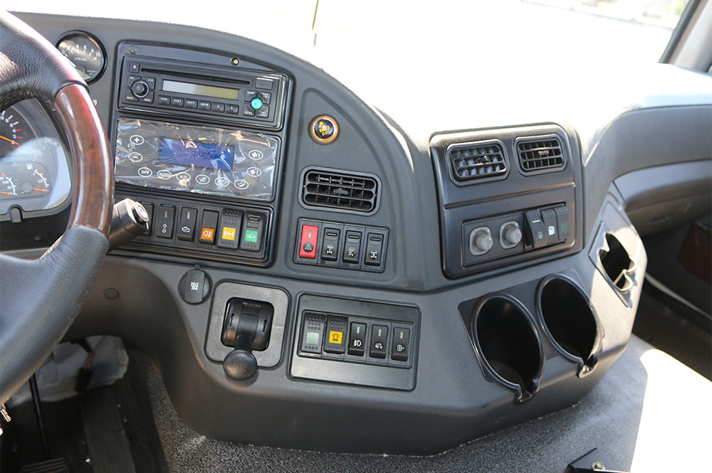 Что же касается нового тягача, то на нем применяется кабина китайского производства Qixing – с двумя эргономичными креслами, за которыми находится место для отдыха. Интегральный рулевой механизм типа «винт – шариковая гайка» с встроенными распределителем и усилителем, способствует меньшей усталости водителя. Панель приборов и руль имеют много функциональных клавиш.