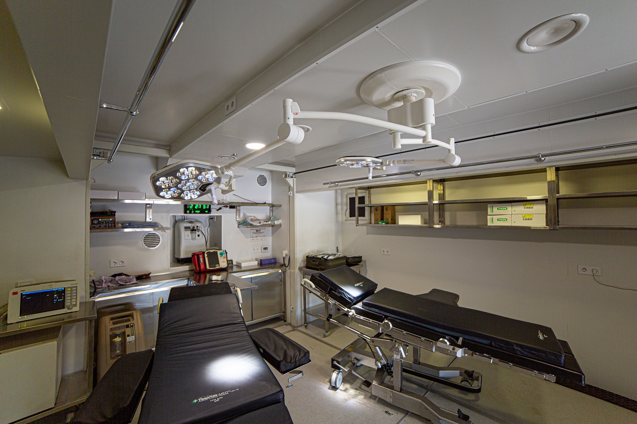 Стабпункты построены на шасси грузовиков Mercedes-Benz Actros и Scania P-cерии, которые оборудованы кузовами-фургонами с раздвижными стенками и аутригерами. В каждом установлены по два хирургических стола, монитора пациента и бестеневых лампы. В комплектацию входят электрохирургический нож, концентратор кислорода, дефибриллятор, портативное УЗД, шприцевые насосы и аппарат ИВЛ.