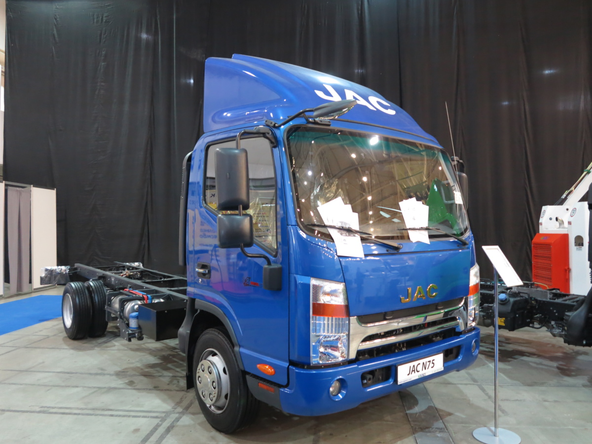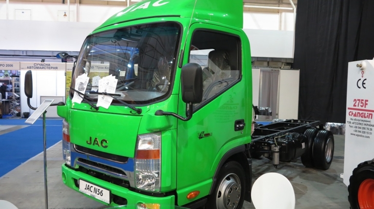 Компания «АГСОЛКО Украина» привезла два малотоннажных грузовика китайской марки JAC. Это модель JAC N56 полной массой 5600 и грузоподъемностью шасси 3450 кг. Двигатель – 2,74-литровый турбодизель JAC HFC4DE в 156 л.с. Вторая модель – JAC N75 полной массой 7490 кг и грузоподъемностью шасси 4470 кг. Турбодизель Cummins ISF 3.8 – рабочим объемом 3,76 л и мощностью тоже 156 л.с.