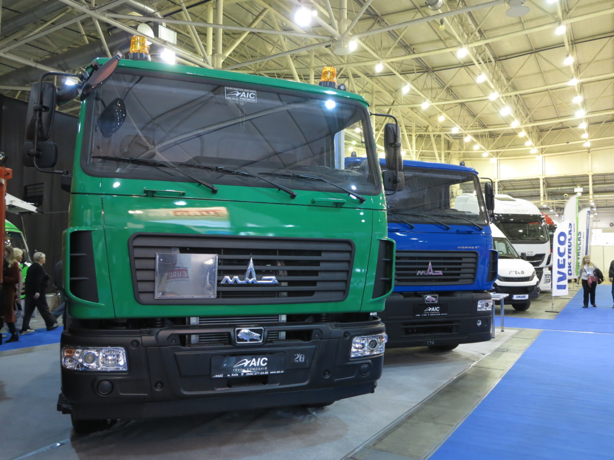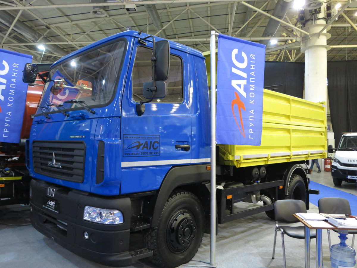 Группа компаний «АИС» демонстрирует три специализированных автомобиля МАЗ. Это самосвал-сельхозник с 11,4-кубовой платформой трехсторонней разгрузки на шасси МАЗ-4381, грузоподъемностью 5,5 т. А также автотопливозаправщик – с 10-кубовой двухсецкионной цистерной на шасси МАЗ-5340.