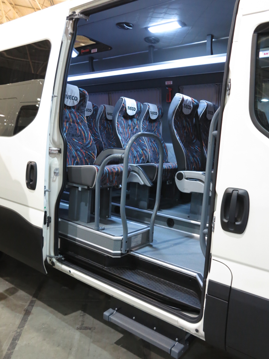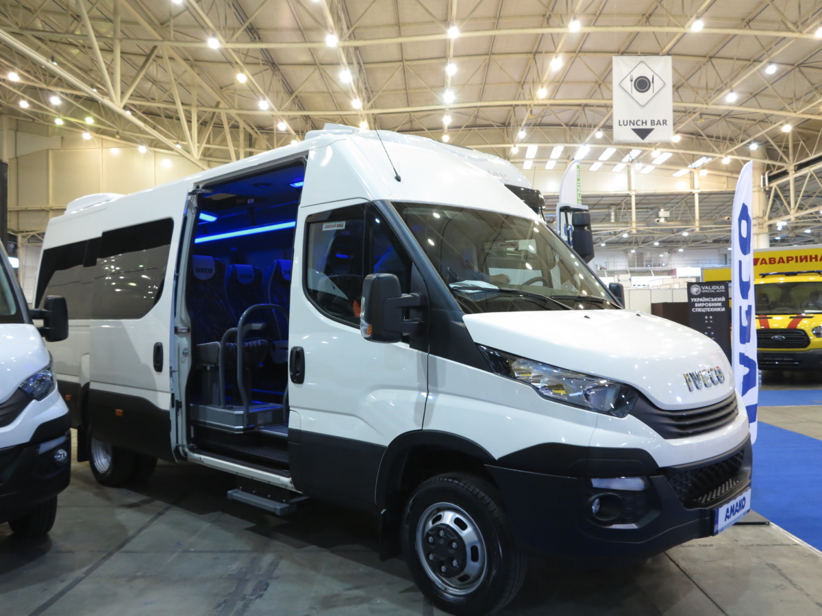 На стенде компании АМАКО презентован междугородный автобус малого класса на шасси IVECO Daily – с двигателем 146 л.с. и механической КП. Машина доработана украинской компанией «Авто-Оранти» из Ровно. В салоне -19 комфортабельных кресел отечественного производства.