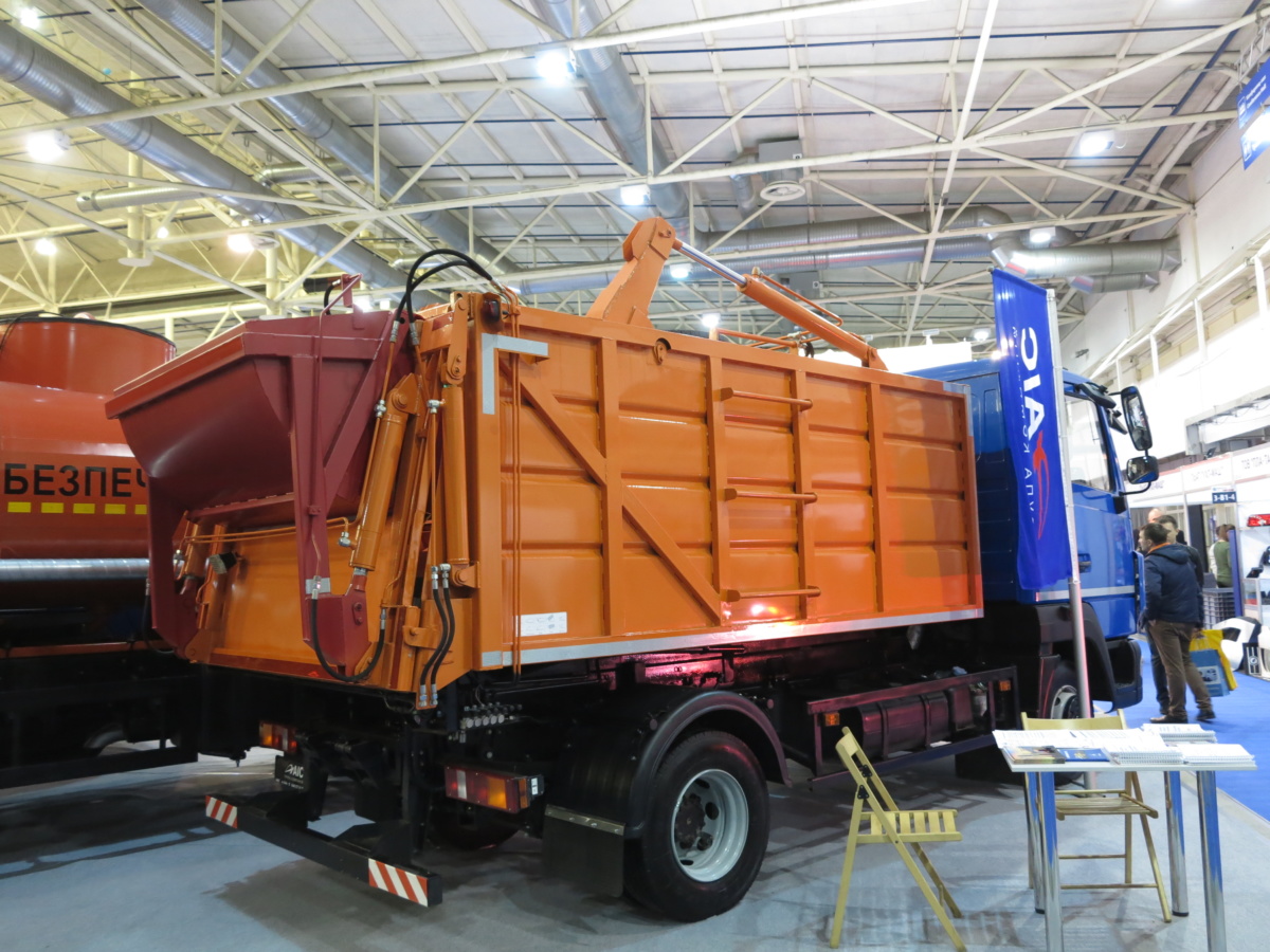 И, наконец, мусоровоз с задней загрузкой – полезным объемом 10 м кубю и коэффициентом прессования «3» – на шасси МАЗ-4371. Все эти надстройки изготовлены на предприятии в Кременчуге.