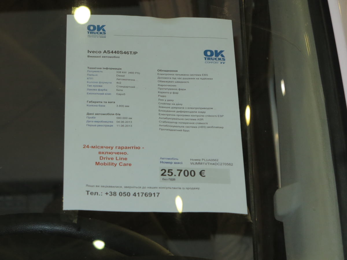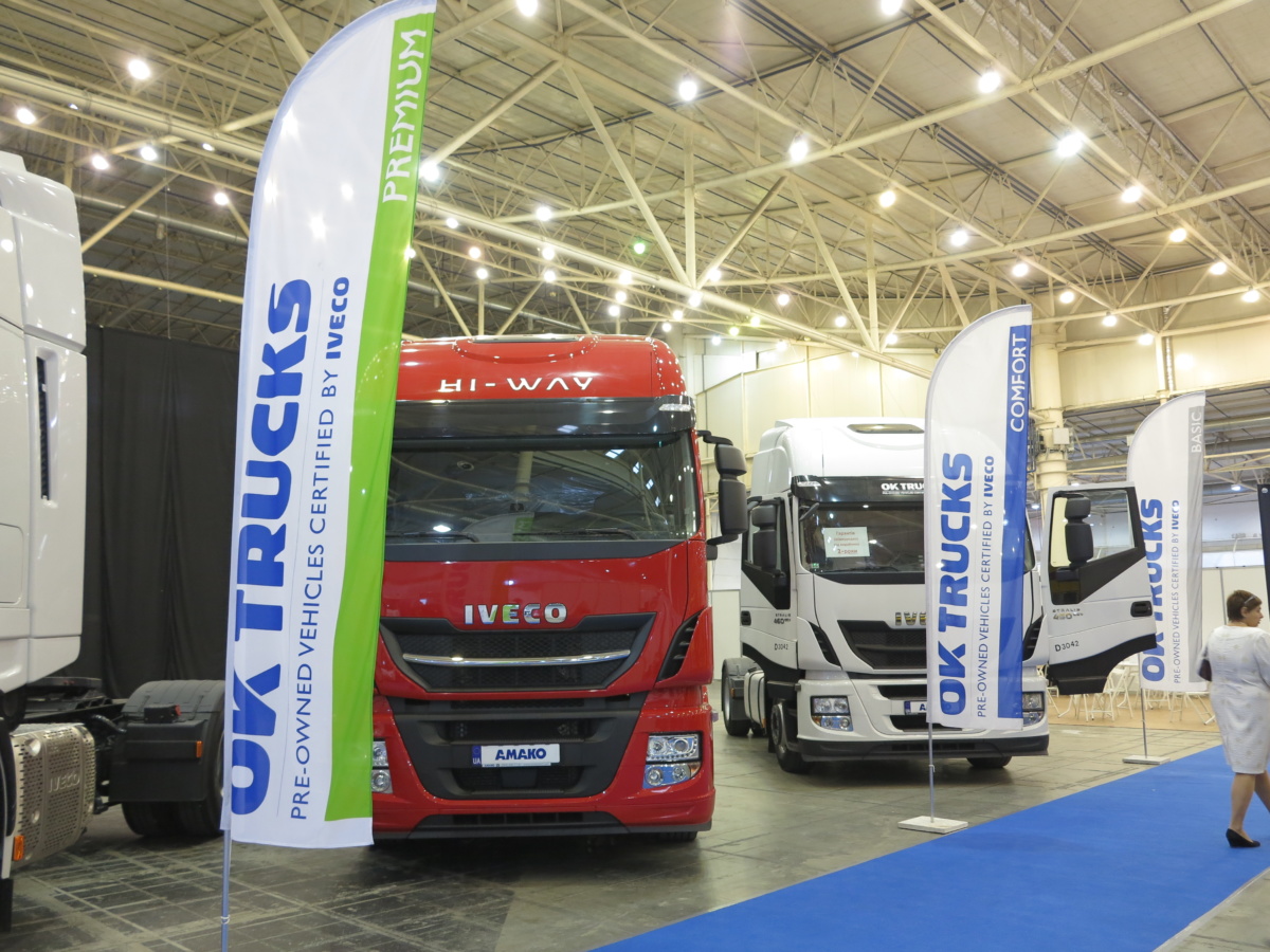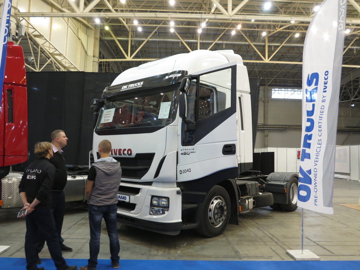 Есть и куда более доступный вариант – на стенде представлен магистральный тягач IVECO Stralis, реализуемый по фирменной программе OK Trucks. Это сертифицированные машины с пробегом не старше 7 лет, которые поступают из Европы и проходят предпродажную подготовку. На TIR 2018 показан тягач Stralis 2013 года выпуска и пробегом 580 тыс. км. Машина с двигателем 460 л.с. Евро 5 продается за 27 500 евро и имеет 24-месячную гарантию.