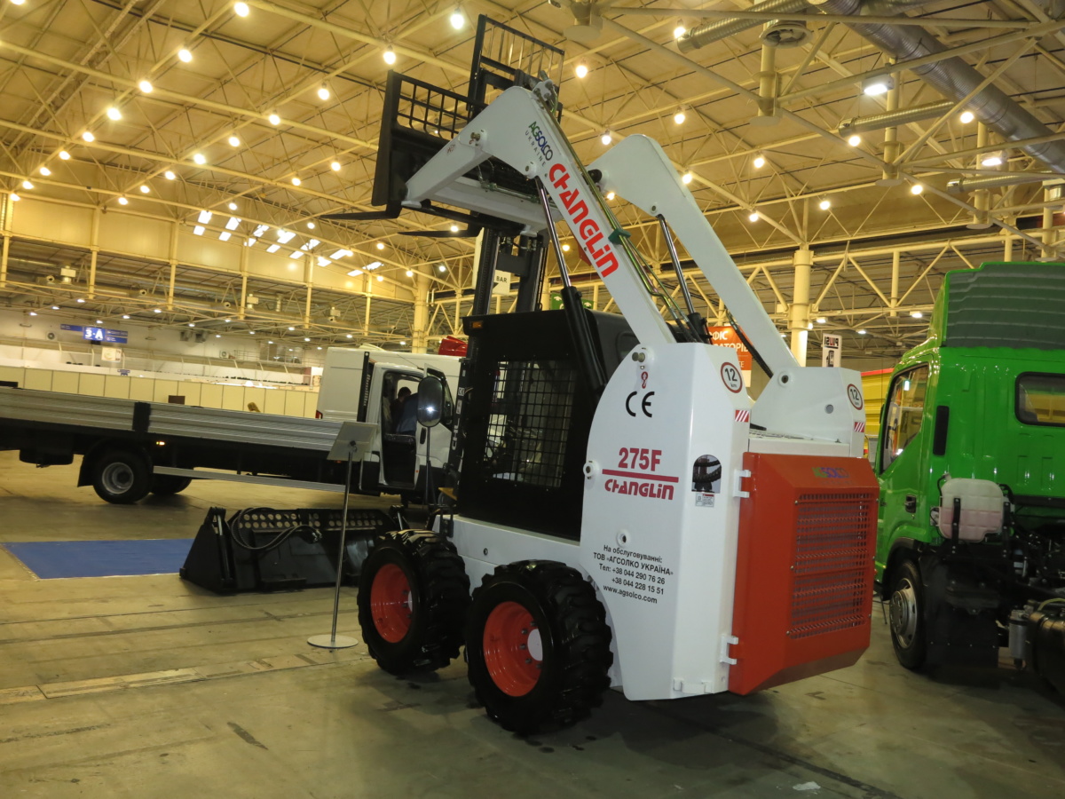 На стенде «Агсолко Украина» можно увидеть и колесный минипогрузчик с боковым поворотом – Changlin 275F, изготовленный по лицензии Bobcat. Он имеет грузоподъемность 1000 кг эксплуатационную массу 3500 кг и оснащается двигателем Mitsubishi S4S мощностью 75 л.с.