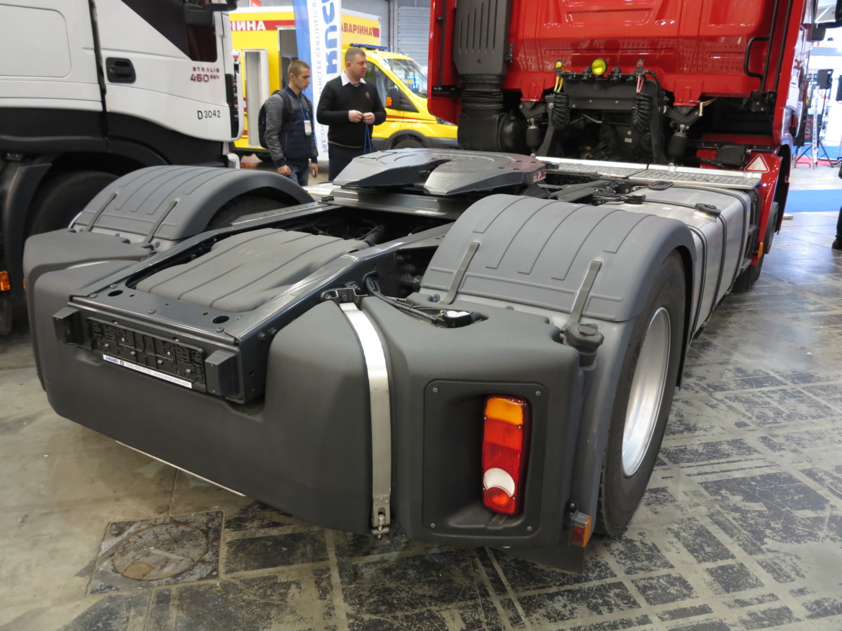 АМАКО также показывает магистральные седельные тягачи IVECO Stralis. Это новые модели Евро 6 – с двигателем 420 и 460 л.с. Самая мощная имеет богатую комплектацию – автоматическую коробку передач ZF Traxon, климат-контроль, дополнительный бак в заднем свесе на 260 л – суммарный объем баков достигает 1400 л. Такая машина продается по акционной цене 86 500 евро. Модель Stralis в более скоромной комплектации, с мотором 420 л.с. предлагается за 79 500 евро.