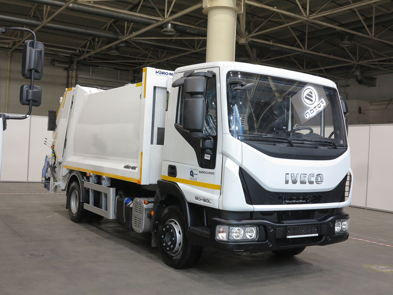 На стенде также показаны и два мусоровоза задней загрузки от турецкого производителя Hidro-MAK. Это модель с 15-кубовым бункером на шасси Ford Trucks и 10-куовым на шасси IVECO EuroCargo ML120EL18-E5.
