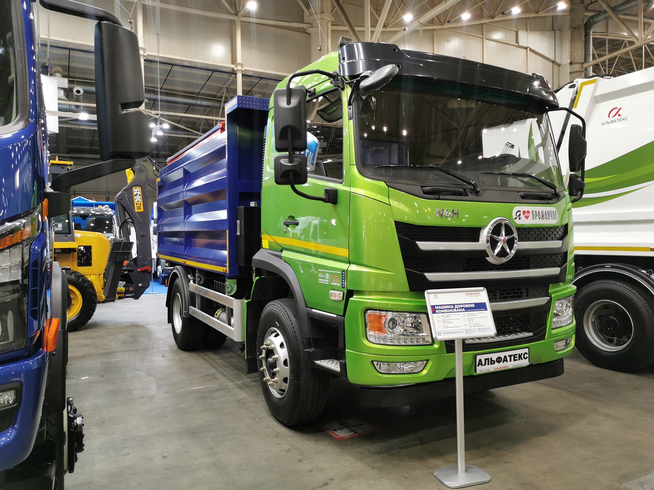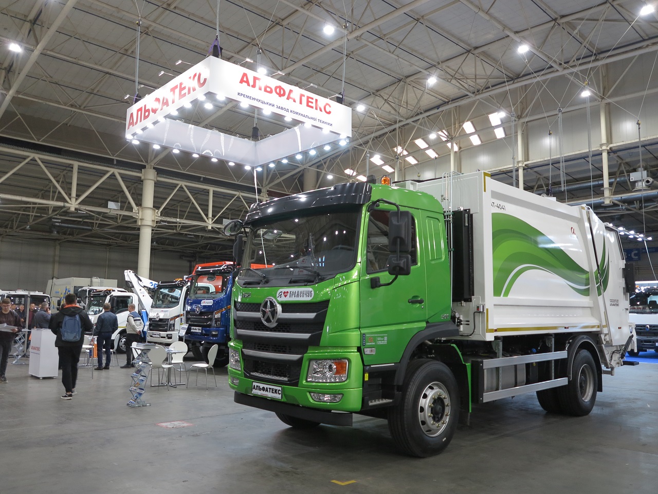 Кременчугский завод коммунальной техники «Альфатекс» привез две яркие новинки. Это модель Dayun 1210, которая рассчитана на полную массу 21 т и оснащена 7-литровым турбодизелем мощностью 300 л. с. и механической 9-ступенчатой КП. Машин отличается просторной двухместной кабиной со спальником.