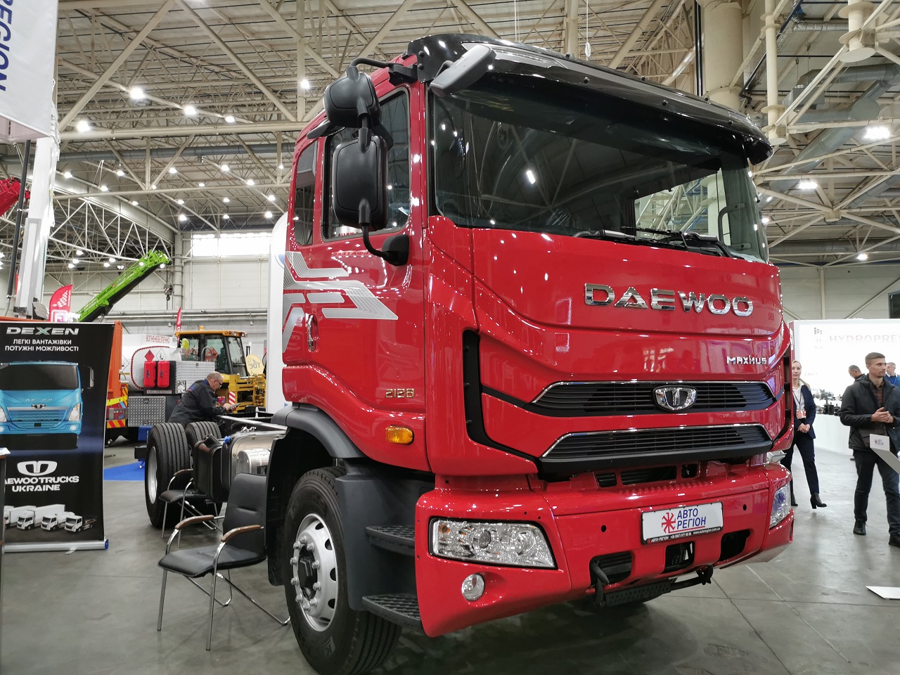 Компания «Авто-Регион» привезла новое шасси Daewoo Trucks – модель Maximus 2128, рассчитанное на полную массу 21 100 кг и грузоподъемность 15 300 кг. Здесь установлена совершенна новая по дизайну и более комфортабельная внутри кабина. Машина оснащена турбодизелем Doosan DU6K (Евро 5) рабочим объемом 5,89 л и мощностью 280 л. с. Коробка передач – ZF, механическая, 9-ступенчатая.