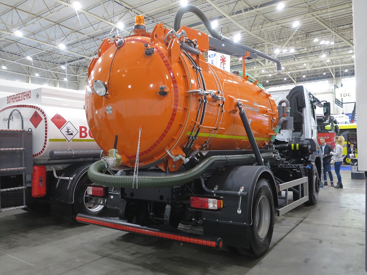 На двухосных шасси 1833 DC также экспонируются 8-кубовый мулосос и 10-кубовый автотопливозаправщик. А на трехоснике Ford Trucks 2633 DC представлен мусоровоз задней загрузки с объемом бункера 22 кубометра, способный перевозить до 10 т отходов.