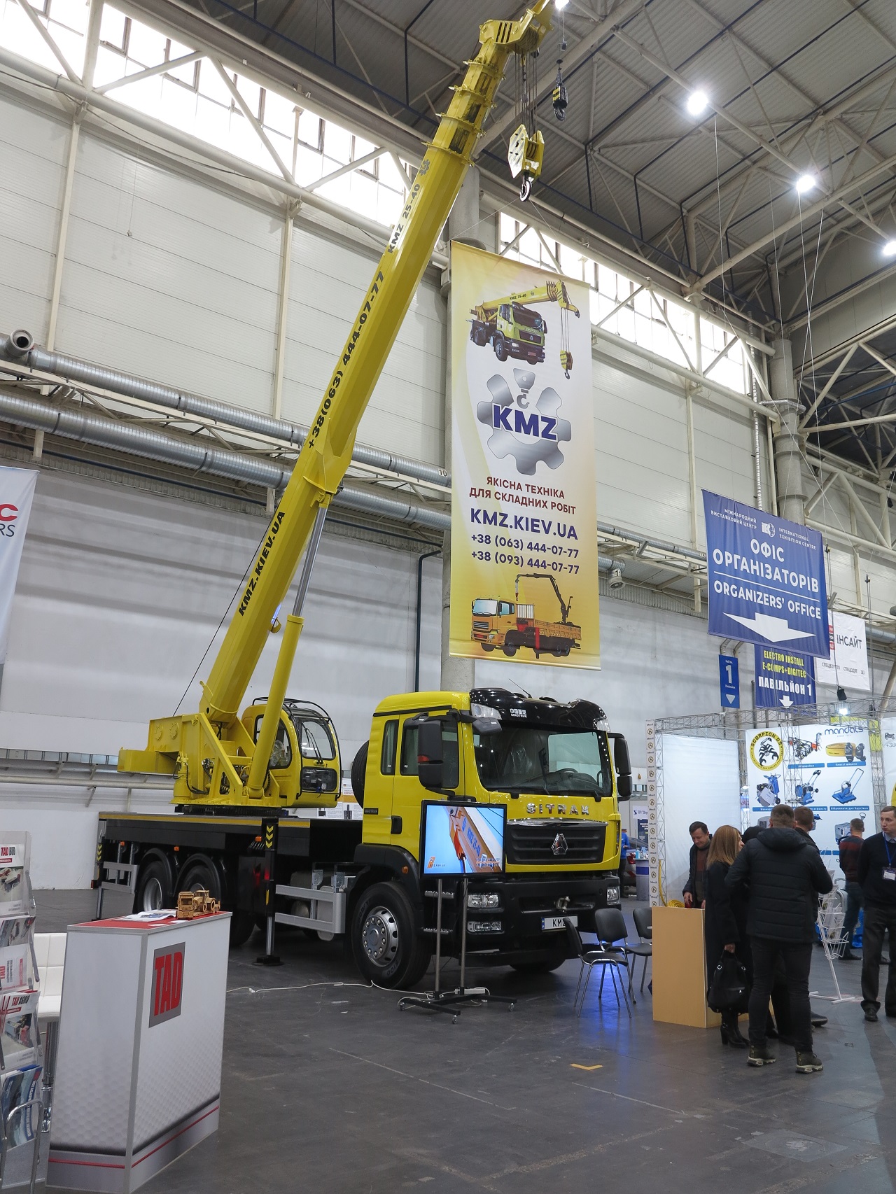 Свой автокран привез и Киевский машиностроительный завод. Это 25-тонная модель 25-40 на трехосном шасси SITRAK. Максимальный грузовой момент составляет 800 кН-м. Пятисекционная стрела длиной 40 м обеспечивает подъем груза на 39,2 м. Максимальный вылет – 30 м.
