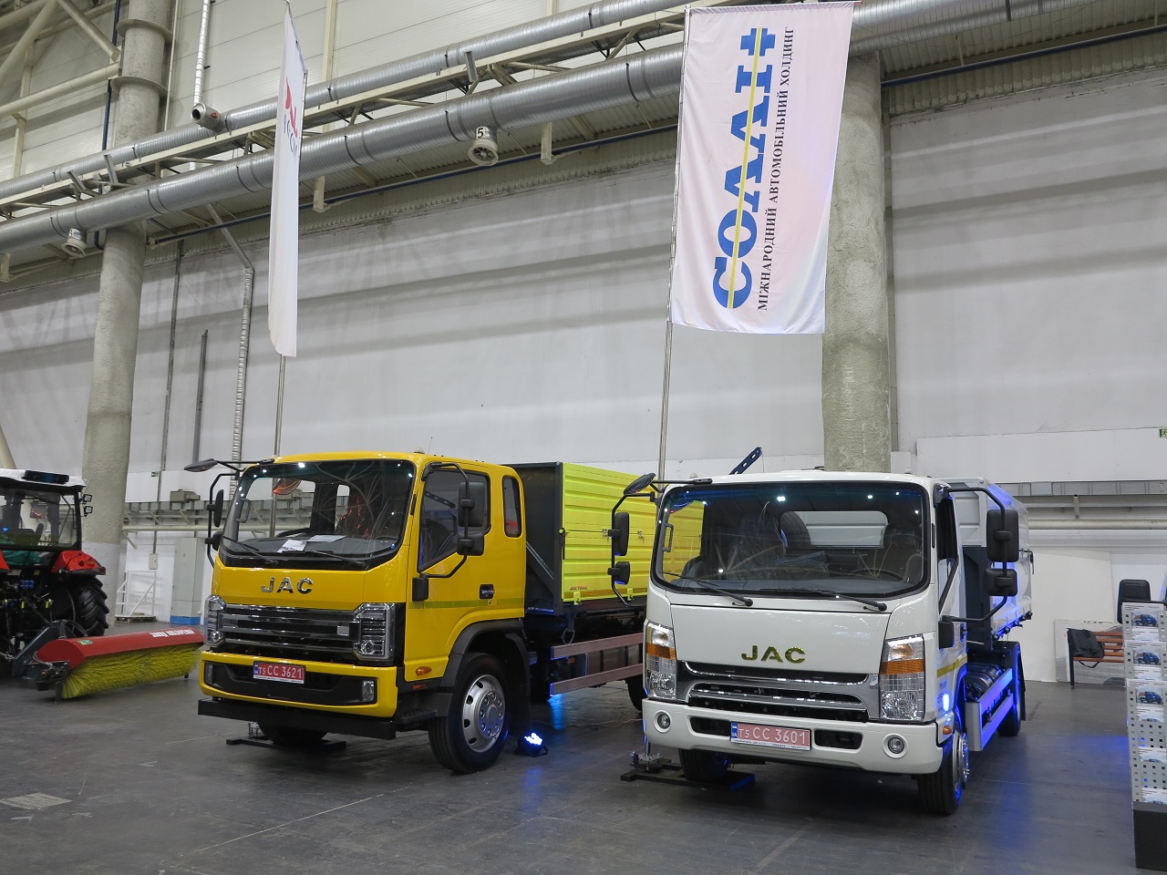 Международный автомобильный холдинг «Солли-Плюс» демонстрировал на выставке различные автомобили марки JAC. Среди них стоит отметить модель JAC N90 c cамосвальным кузовом Завода спецтехники «Техкомплект».