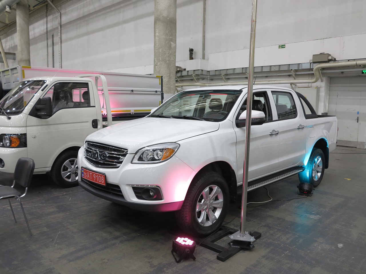 Также «Солли-Плюс» привезла и бортовую компактную модель JAC N35 грузоподъемностью 1845 кг. Полная масса – 3490 кг. Здесь установлен дизельный двигатель мощностью 129 л. с. Максимальная скорость – 115 км/ч. Демонстрировался также и пикап с двухрядной кабиной – JAC T6, укомплектованный двухлитровым дизелем мощностью 139 л. с.