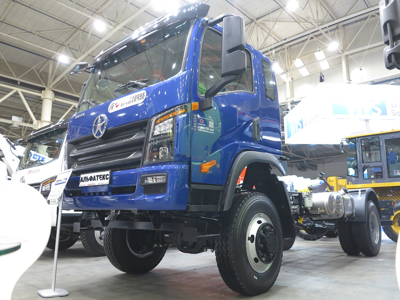 Вторая новинка от «Альфатекс» – полноприводное шасси Dayun CGC1121 (4х4), рассчитанное на полную массу 12 100 кг, оснащенное 160-сильным дизелем и 6-ступенчатой механической КП. Машина отличается комфортабельной трехместной кабиной.