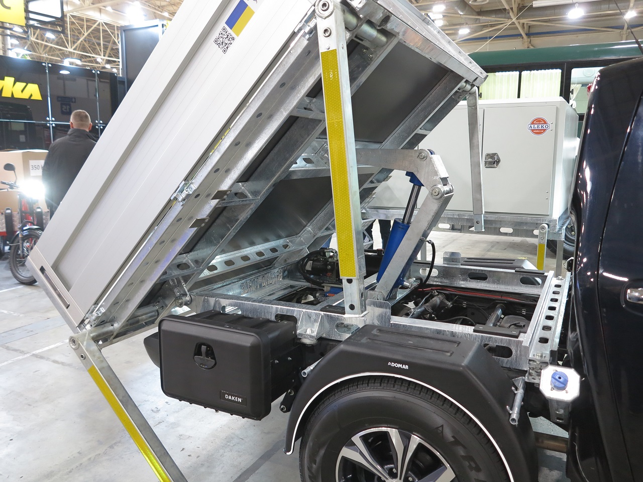 На стенде «Зернотрейд» также были представлены пикапы Dongfeng с различными надстройками. Среди них самосвал – с алюминиевым кузовом «АЛЕКО» и гидроприводом механизма подъема. А на открытой площадке были показаны четырехосные тралы 70Т CCES грузоподъемностью 70 т, также собранные на предприятии «АЛЕКО».