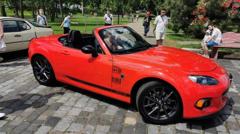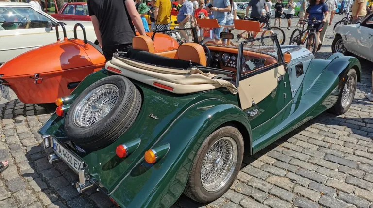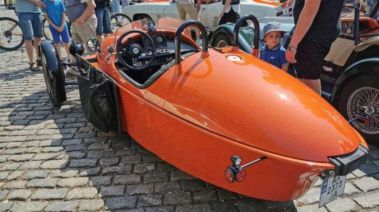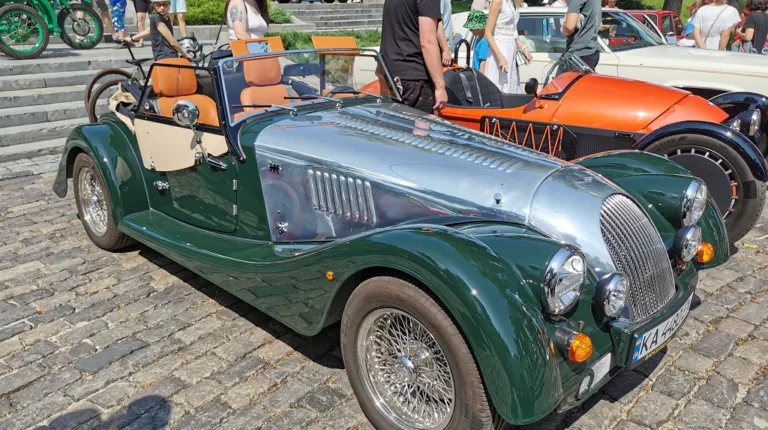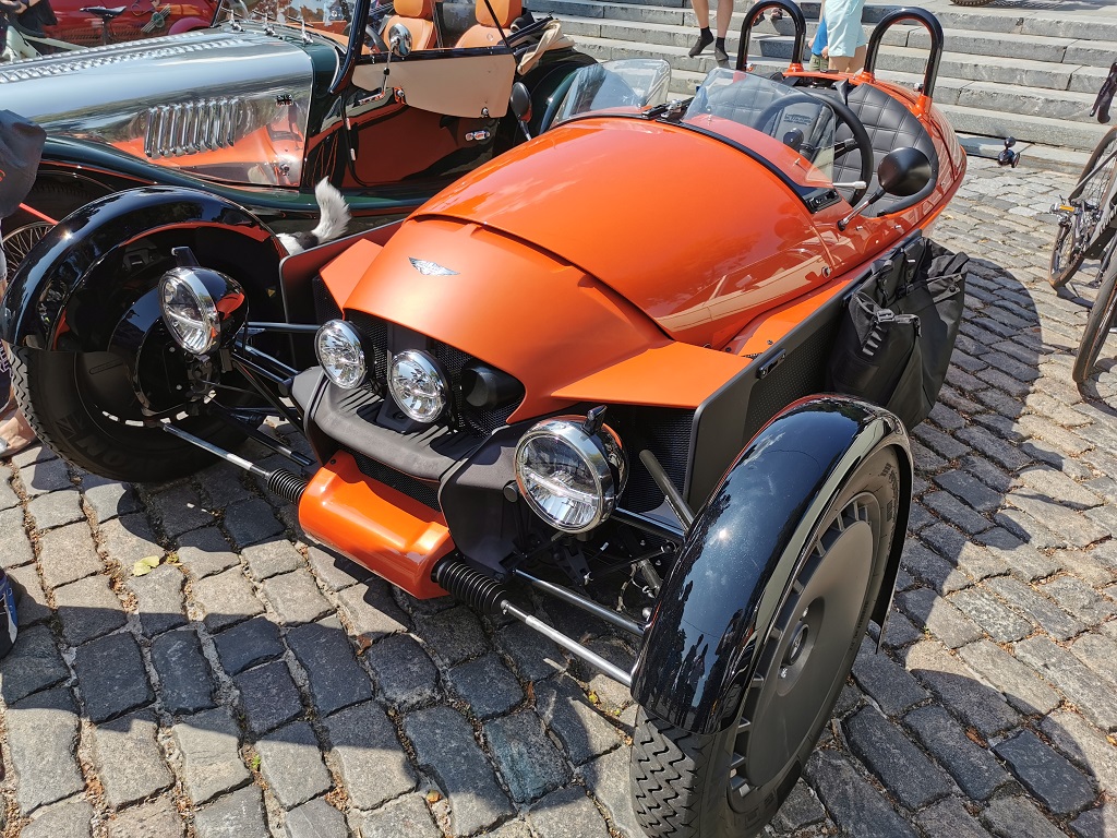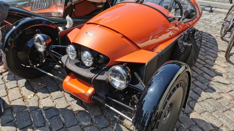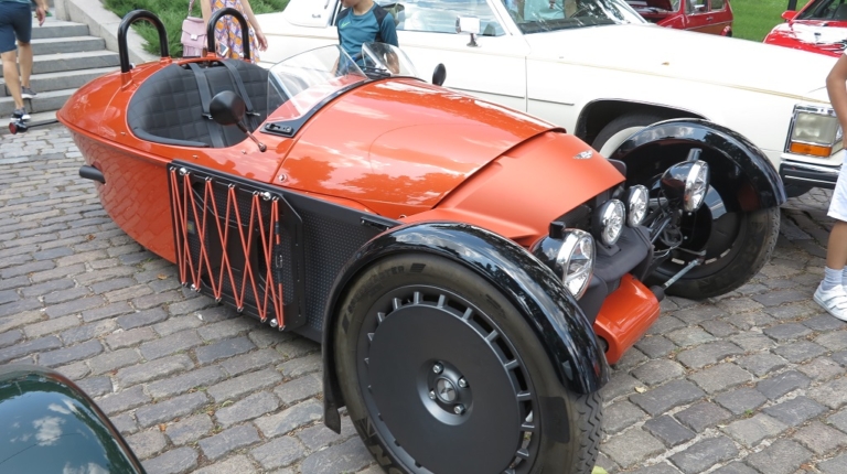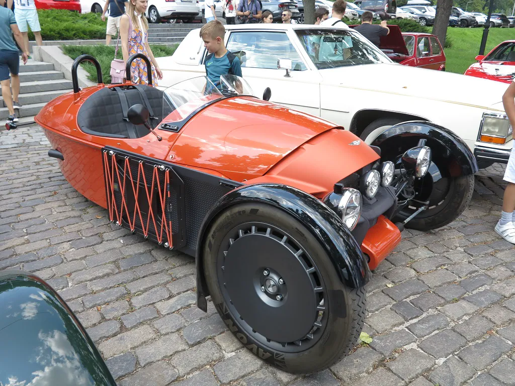 Особого внимания заслуживают два спортивных родстера британской марки Morgan. Это трехколесная модель Super 3 выпуска 2022 года, оснащенная 1,5-литровым бензиновым двигателем Ford c приводом на единственное заднее колесо. Мотор в 117 л. с. разгоняет 600-килограммовую машину от 0 до 100 км/с за 7 с, обеспечивая «максималку» в 210 км/ч.
