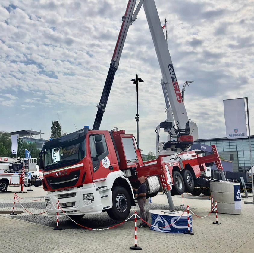 На крупнейшей международной выставке аварийно-спасательной техники Interschutz 2022, которая проходила в Ганновере с 20 по 25 июня, итальянский производитель Сela Platforms представил не имеющий аналогов пожарный автоподъемник. Это новейшая 50-метровая модель, выполненная на трехосном шасси IVECO Trakker (6х2).
