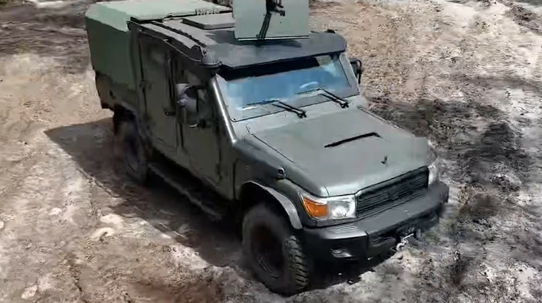 Военным автомобиль нравится. При полной массе 5,7 т машина хорошо показала себя на песчаной местности. В этом заслуга тяговитого 4,5-литрового турбодизеля мощностью 200 л. с. от Toyota Land Cruiser 79. Благодаря небольшим размерам «Джура» малоприметный для вражеских дронов.