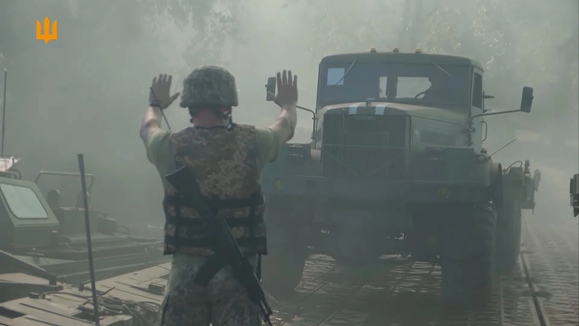 Загрузка техники на паром – один из самых сложных этапов переправы, который требует ювелирной точности и умения, которые можно получить только на практике. Поэтому такие учения Силы поддержки Сухопутных войск Украины проводят каждую неделю, в том числе и в прифронтовых районах.