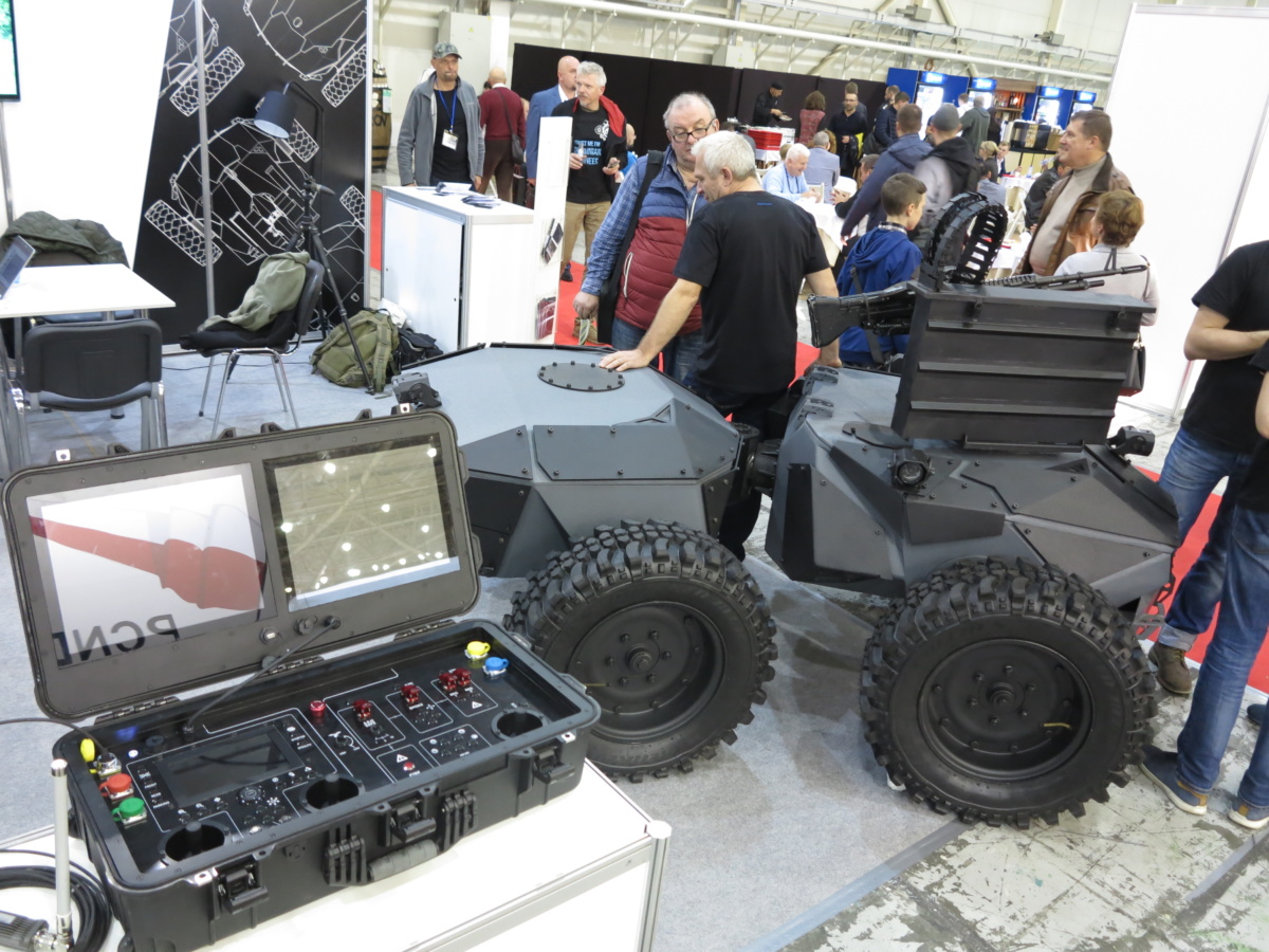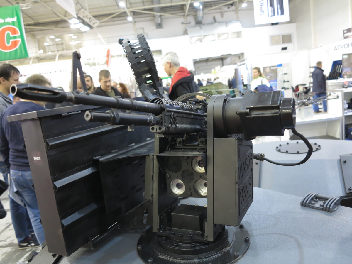 А на стенде Завода «Кузница на Рыбальском» представлен боевой дистанционно управлемый модуль «Пиранья». Он предназначен для выполнения задач огневого поражения и разведывательных целей. Также может транспортировать грузы, эвакуировать раненых и доставлять боеприпасы.