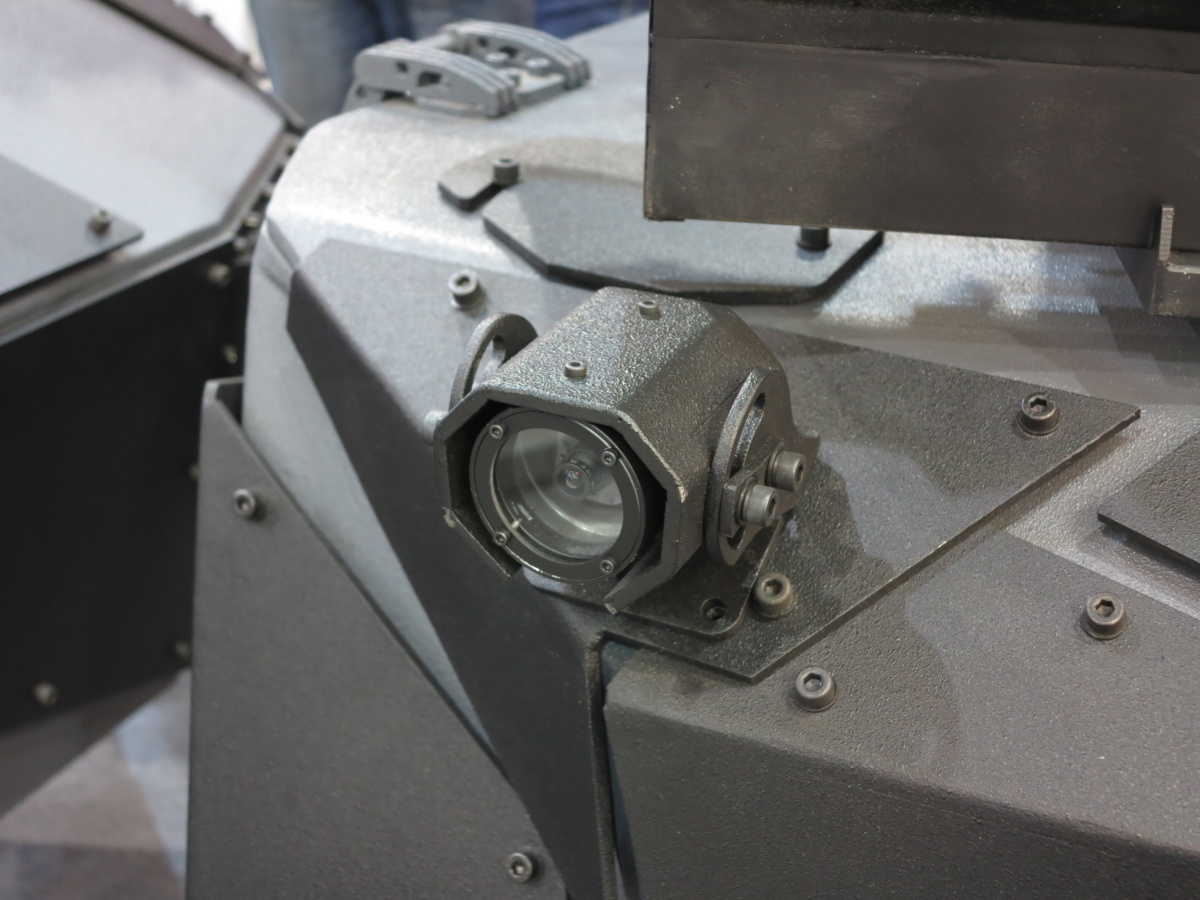 Машина оснащена видеокамерами широкого и узкого обзора. В качестве опции – можно установить тепловизор и стереокамеру. Имеется лазерный дальномер. Дальность поражения цели – 1000 м. обнаружение видеокамерой и тепловизором – 1000 м. Имеется система автоматического удержания цели.