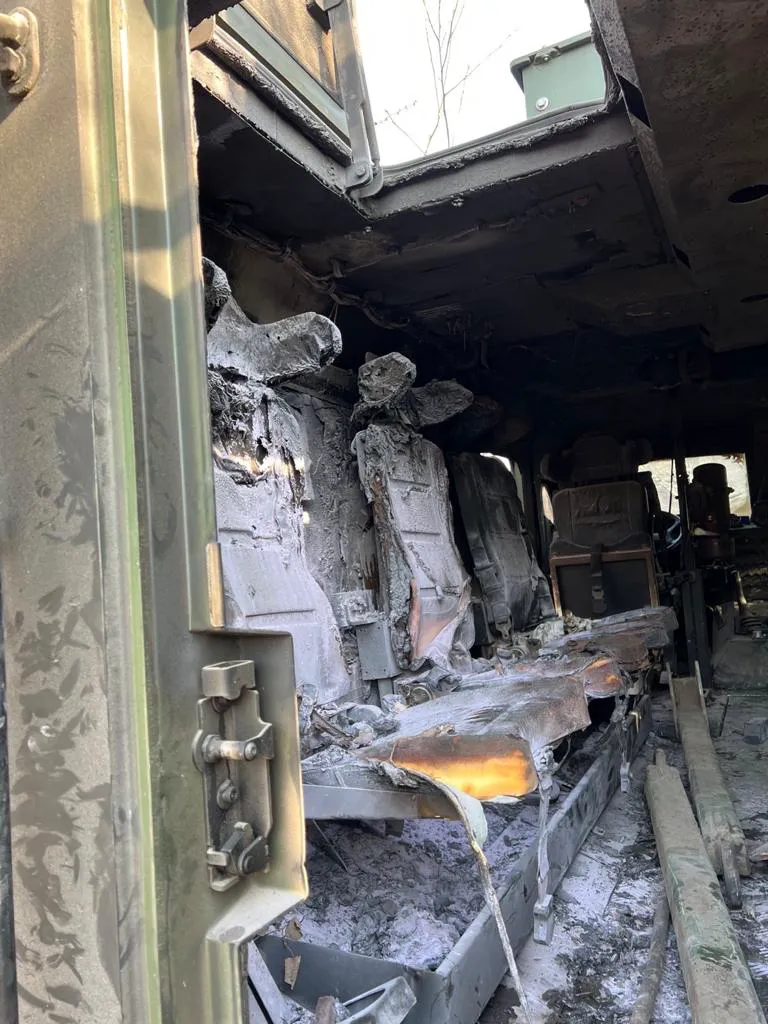 На днях бронеавтомобиль «Варта» в очередной раз продемонстрировал свою высокую защищенность. Машина возле Бахмута перевозила группу снайперов и попала под вражеский артобстрел. Рядом разорвавшийся снаряд повредил осколками бронекорпус и колеса. Машина загорелась, однако успела доставить наших бойцов до базы целыми и невредимыми.