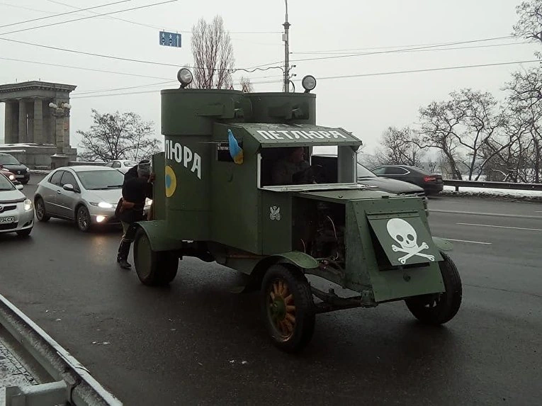 Представленный на Дне Соборности Украины броневик-макет изготовлен на шасси хорошо известного грузовика ГАЗ-51. Это весьма точная копия оригинала – на бортах и на лобовом листе моторного отсека красуется жовто-блакитний знак в виде двух кругов, свидетельствующий о принадлежности к армии УНР.