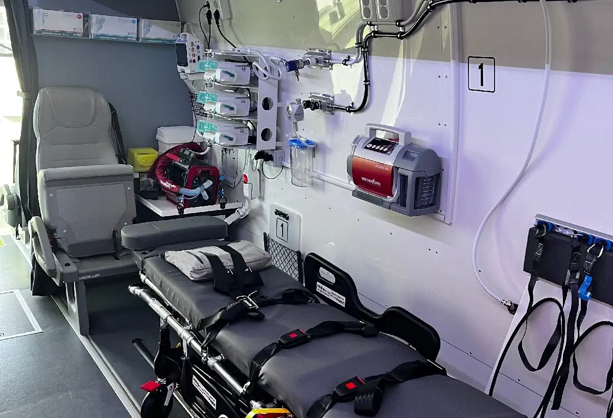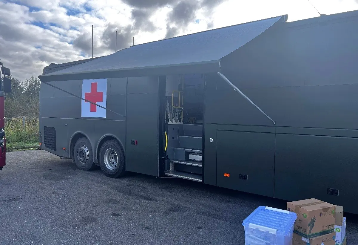 Каждая из машин – на базе туристической модели Volvo 9700 (6x2) – оснащена передовым медицинским оборудованием, что позволяет одновременно проводить реанимационные действия трех тяжело раненных бойцов. При этом можно провозить четырех лежачих и восемь сидячих раненных. Для погрузки-выгрузки носилок автобус оборудован гидроподъемником у центральной двери, на которой также имеется раздвижной тентованный навес (маркиза)