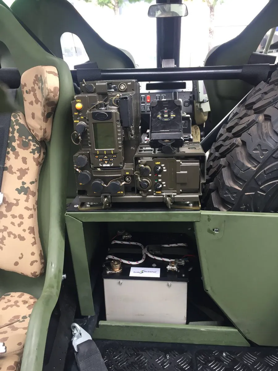 Заслуживает внимания мощный трубчатый каркас вокруг салона, заходящий на капот – лобового стекла как такового нет. На каркасе установлена турель под пулемет или под другое вооружение.