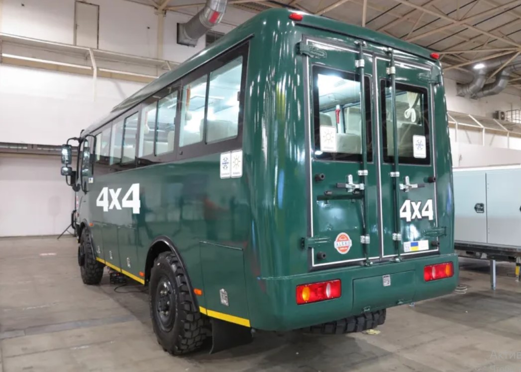 Мобильный пункт управления изготовлен на срециализированном полноприводном автомобиле. Марка его не указывается, однако из приведенной на сайте Минобороны фотографии можно понять, что это внедорожный автобус ALEКO Q6680ZT6D, впервые показанный широкой публике на выставке «КоммунТех 2023» в Киеве.