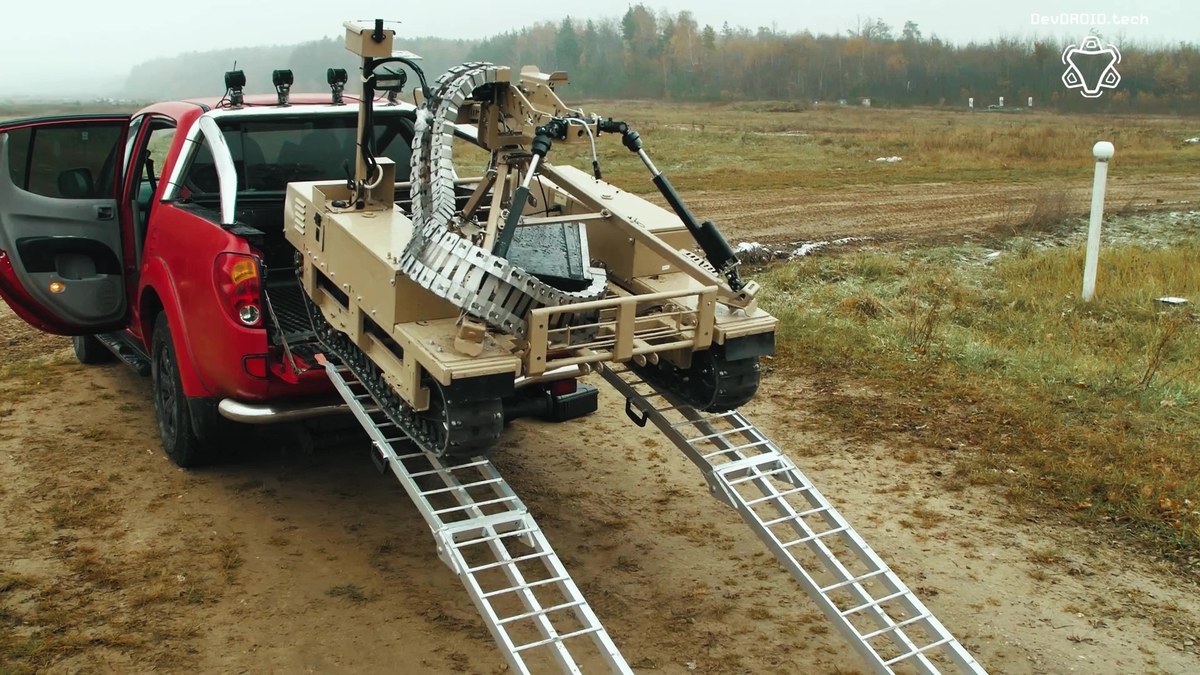 Гусеничное шасси с электроприводом обладает высокой проходимостью и имеет запас хода до 15 км. Стоимость Droid TW 12.7 варьируется от 26 до 29 тыс. долларов.