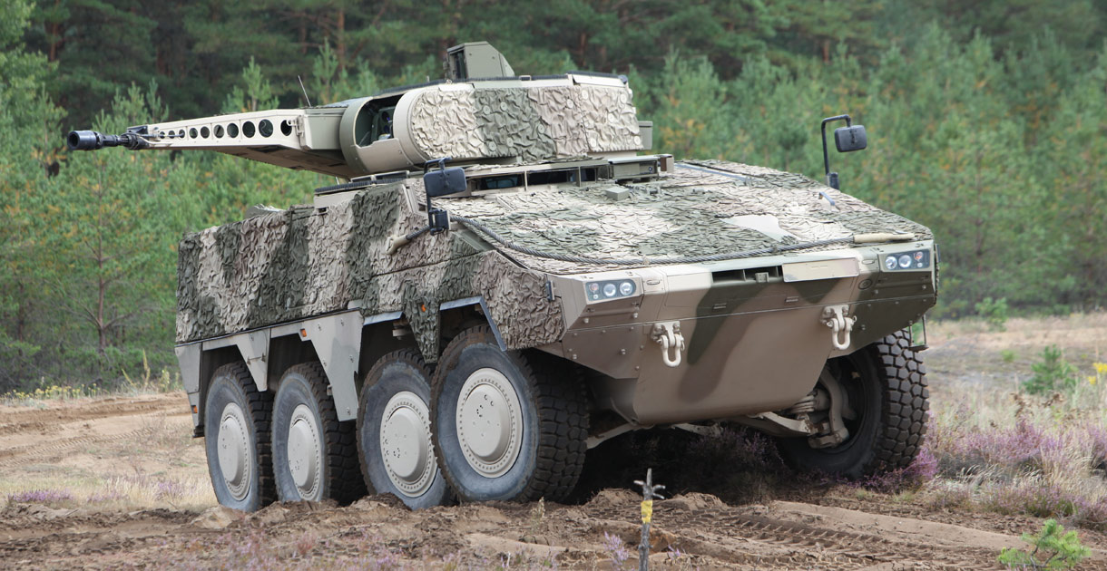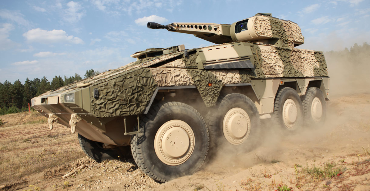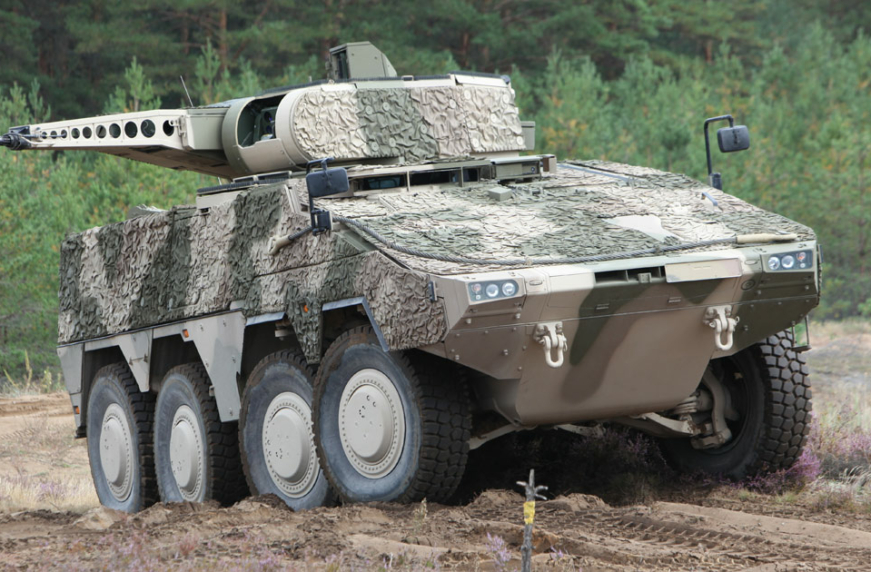 Эти машины 8х8 оснащены дистанционно управляемым боевым модулем с 30-мм автоматической пушкой (с возможностью программируемого подрыва снарядов прямо на лету) и двумя 7,62-мм пулеметами MG5. Экипаж составляет 3 чел., десант – 7 чел. Боевая масса – 38,5 т. Boxer оснащается турбодизелем MTU V8 мощностью 815 л. с. и имеет максимальную скорость 100 км/ч.