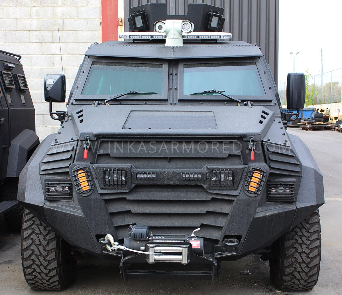 На крыше стандартно установлена поворотная на 360 градусов башня, в которую можно установить пулемет или гранатомет. В базовую комплектацию также входят система ночного видения и система блокировки дверей. В качестве опции возможны многослойное бронестекло, камера кругового обзора, громкоговоритель, а также отвал для устранения возникших на дороге препятствий.