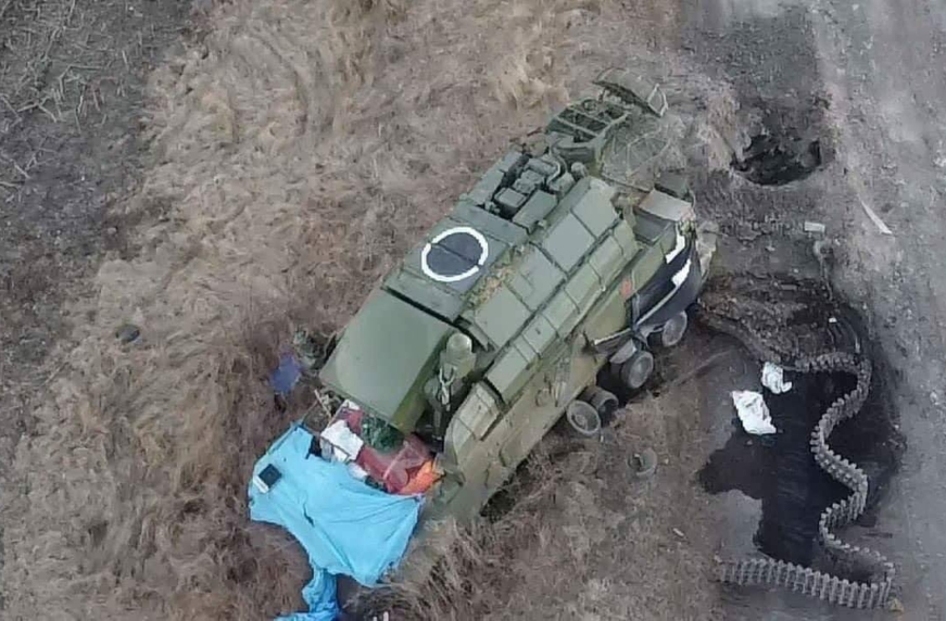 «Российский ЗРК Тор М1 не смог доехать куда должен – какие дыры на дороге)) Кто бы это мог их сделать? Украинские саперы застенчиво молчат…», – говорится в сообщении на странице Facebook Генерального штаба ВСУ.