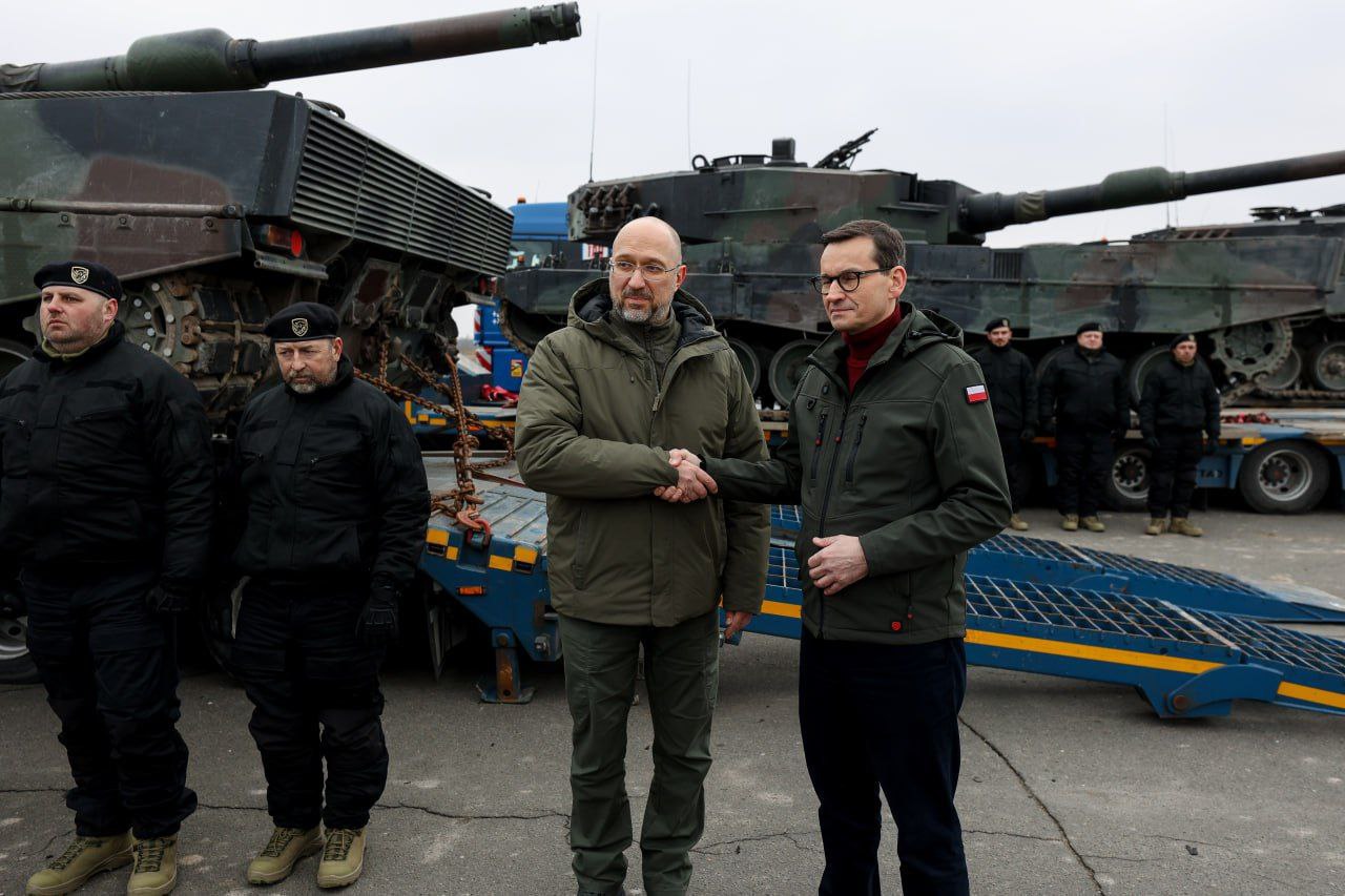 Сегодня, 24 февраля, в годовщину начала полномасштабного российского вторжения в Украину, в нашу страну первые четыре танка Leopard 2. Они были переданы Польшей, которая до этого анонсировала поставку 14 таких боевых машин. Передача танков прошла в присутствии премьер-министра Польши Матеуша Моравецкого и премьер-министра Украины Денисы Шмыгаля. Отметим, что Leopard 2 является основным боевым немецким танком, оснащенным 120-мм гладкоствольной пушкой Rheinmetall, которая также устанавливается на американский M1 Abrams.