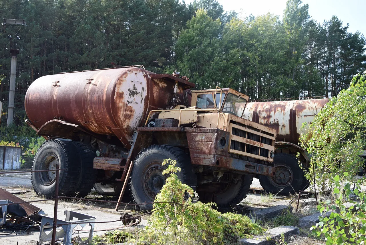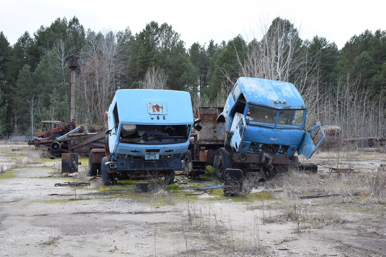 В городе Припять на территории бывшего автомобильного хозяйства находится экспозиция техники, которая участвовала в ликвидации последствий аварии на ЧАЭС и работала в зоне отчуждения на протяжении разных лет.