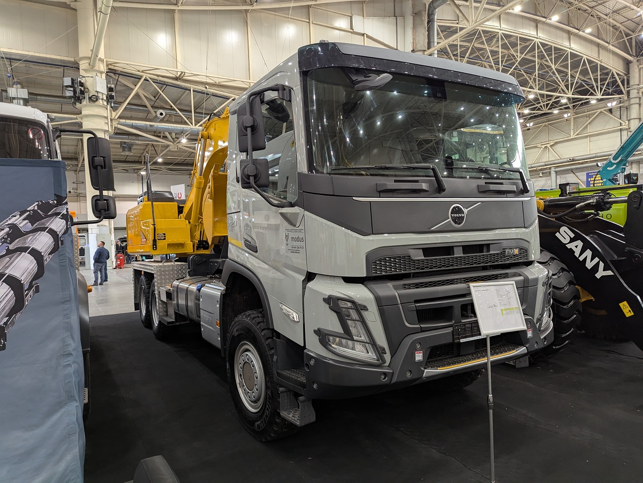 Компания «Модус» демонстрирует автомобильный экскаватор HD512-S и автокран MODUS SPC 250 Palfinger SANY – оба на полноприводных шасси Volvo FMX (6×6).
