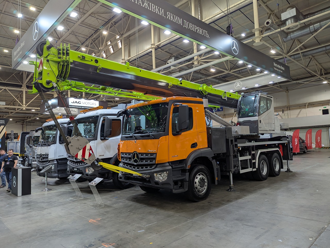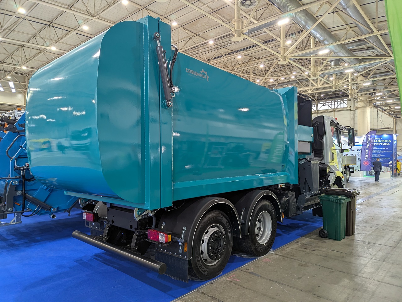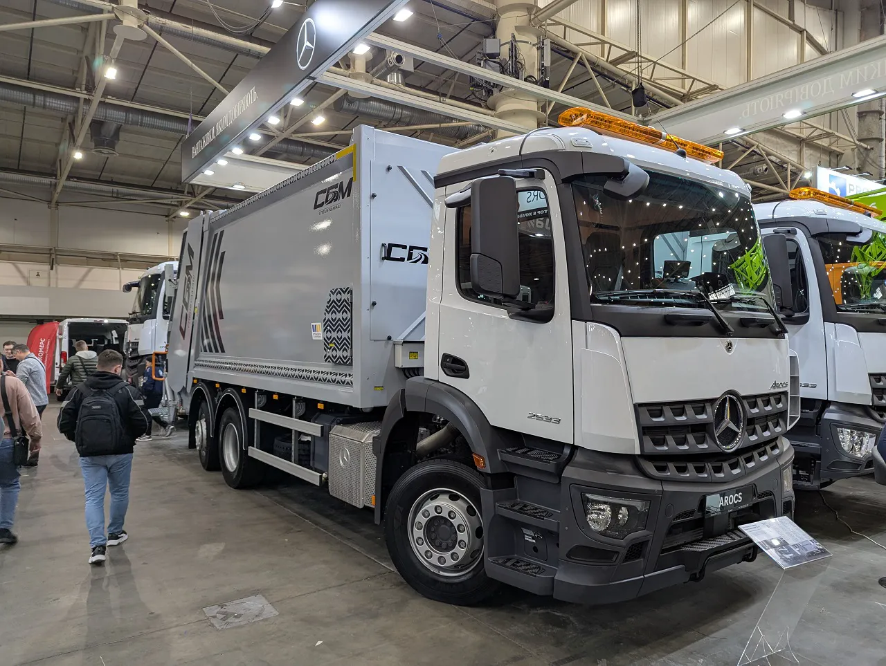 «Будшляхмаш» недавно получил статус официального застройщика кузовных надстроек для Mercedes-Benz. Поэтому на выставке можно увидеть Mercedes-Benz Arocs 2533 (6×4) в качестве мусоровоза задней загрузки. Объем бункера составляет 22 м куб. Полезная нагрузка равна 10 210 кг при степени сжатия 1:4.5 и 13 200 кг при сжатии 1:6.