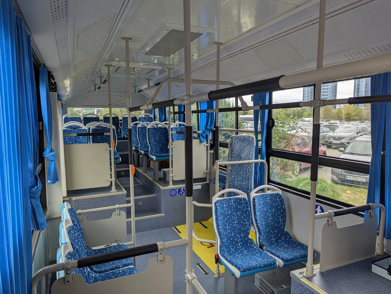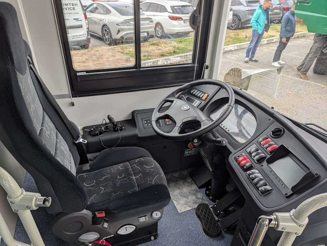 На открытой площадке также можно увидеть городской автобус Asiastar JS6960GHP с дизельным двигателем. Машина имеет длину 9,5 м и салон с низким входом, типа Low Entry.