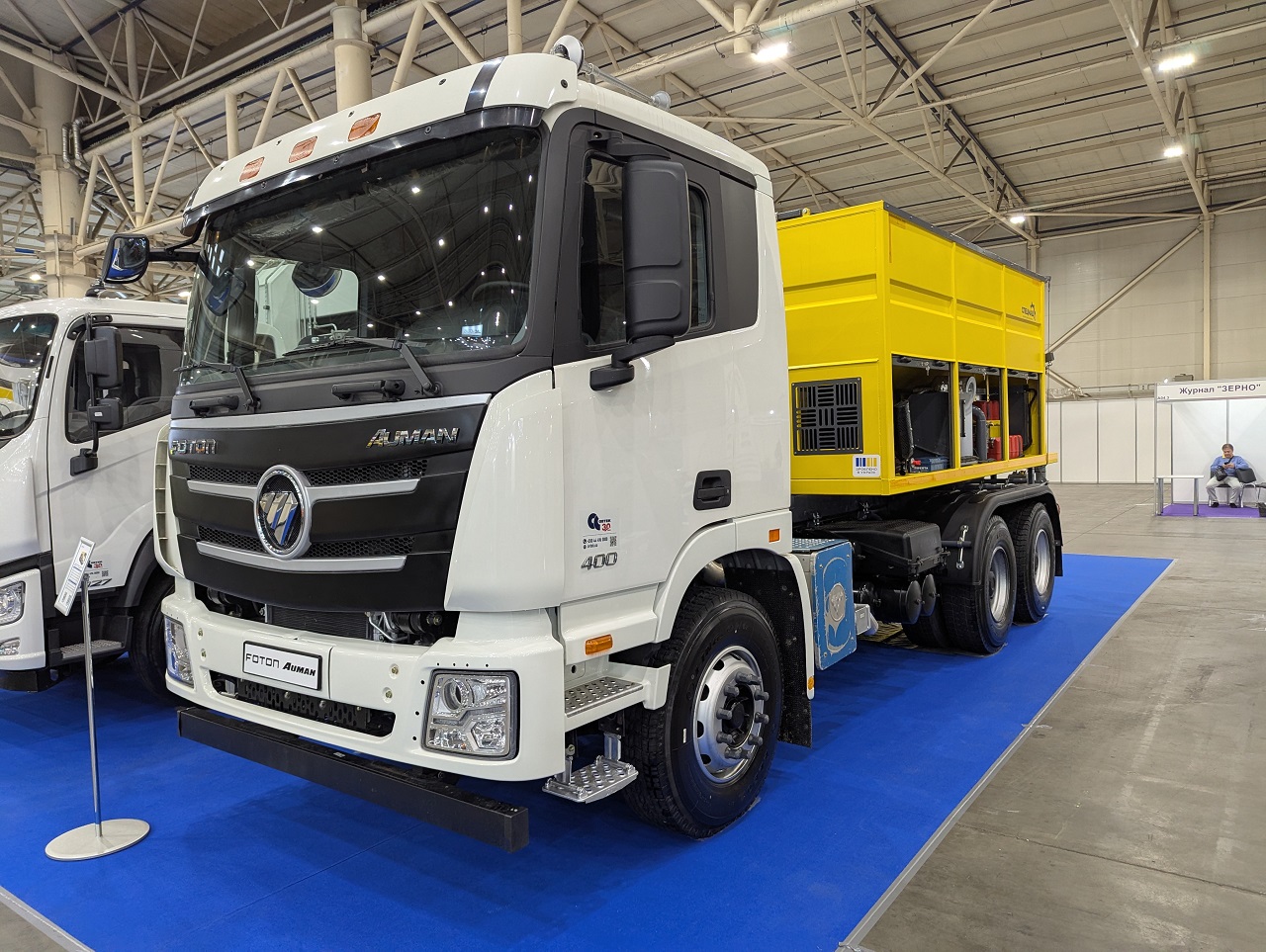 На шасси Fotom Aumam BJ 3259 (6×4) демонстрируется машина для ямочного ремонта Renovator, также производства «Спецмаш». Емкость кузова составляет 9 м куб., объем бункера для эмульсии – 1,6 м куб., бака для масла – 130 л.