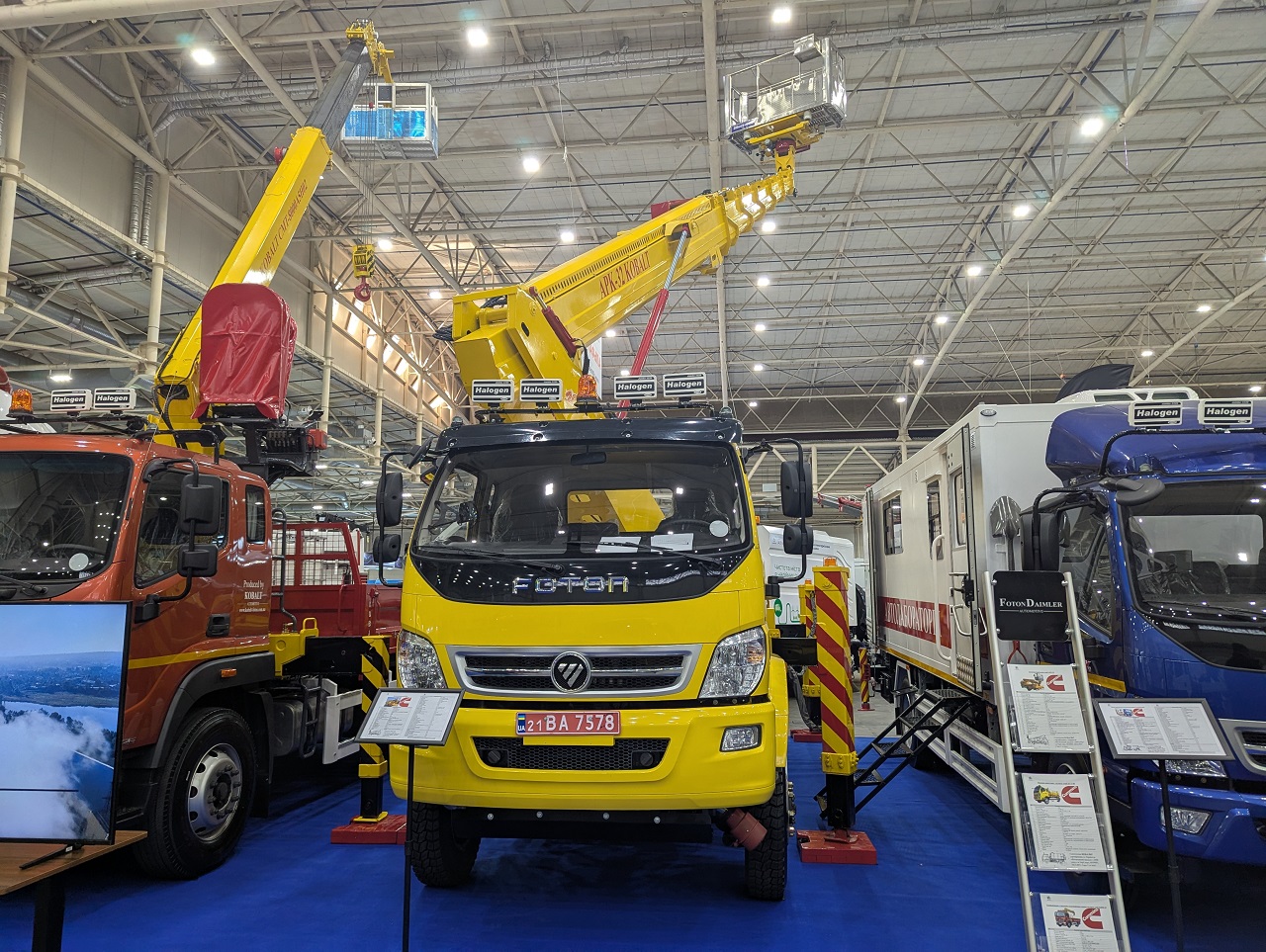 А на среднетоннажном шасси Foton Aumark 1108 представлен 20-метровый автогидроподъемник Azure, опять же от «Спецмаш».