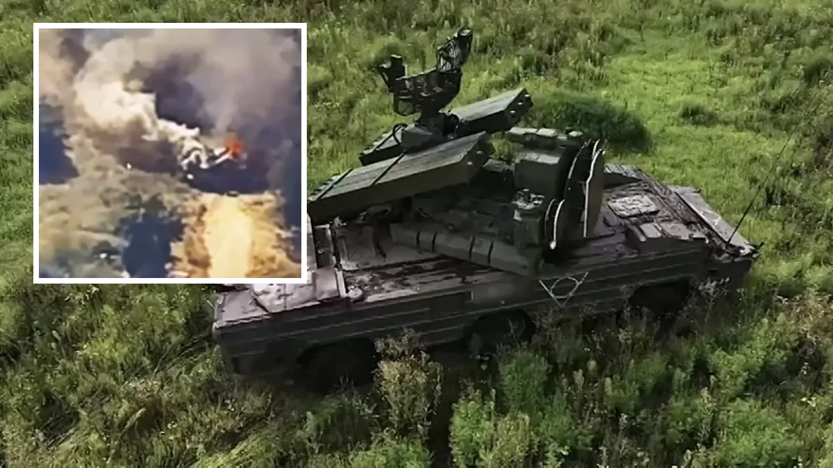 Удар FPV-дрона пришелся на корму зенитного комплекс. Он загорелся. Огонь довольно быстро охватил всю «Осу» и в небо поднялся столб черного дыма. Восстановлению российская машина вряд-ли подлежит. Смог ли спастись ее экипаж, неизвестно.