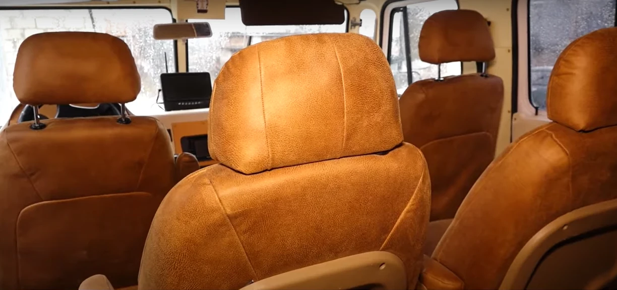 Юрий рассказал, что построен внедорожник на базе грузовика Газ-66. Под его капотом установлен мотор от Mercedes мощностью 150 л.с., который позволяет разгоняться автомобилю весом 4,5 тонны до 90 км/ч. Салон «Украины» комфортный и рассчитан на семь человек.