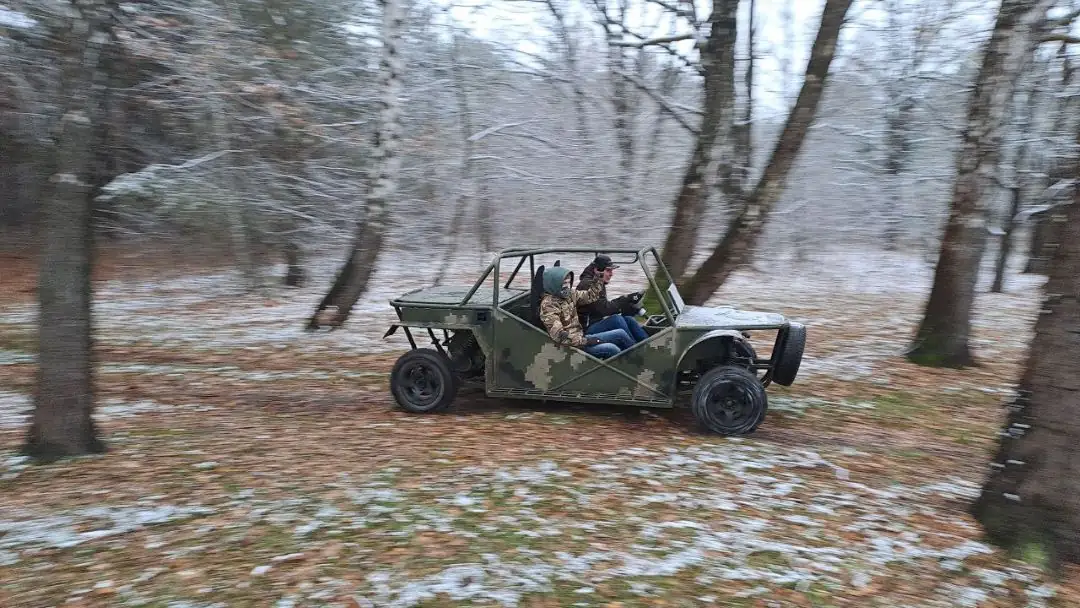 Наш небольшой ознакомительный тест подошел к концу. Жаль, потому что только начал привыкать к управлению этим зеленым чертом. Тяжелый в управлении, со своим характером он все же станет очень полезным помощником на передовой. Военным эти машины волонтеры передают бесплатно. Искреннее благодарность всем, кто создает такие полезные и нужные вещи для нашей армии. Вместе победим!