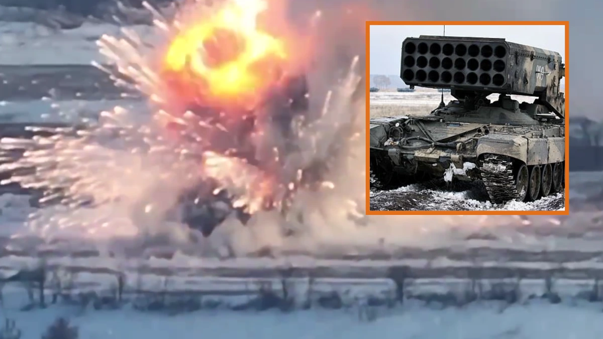 Чем именно поразили вражескую огнеметную систему в ВСУ не сообщили, но боекомплект машины долго детонировал. От взрыва возник феномен, который называется «снежный фонтан» или «снежный вулкан». Кадры уничтожения «Солнцепека» показали в Telegram-группе «Балла HUB».