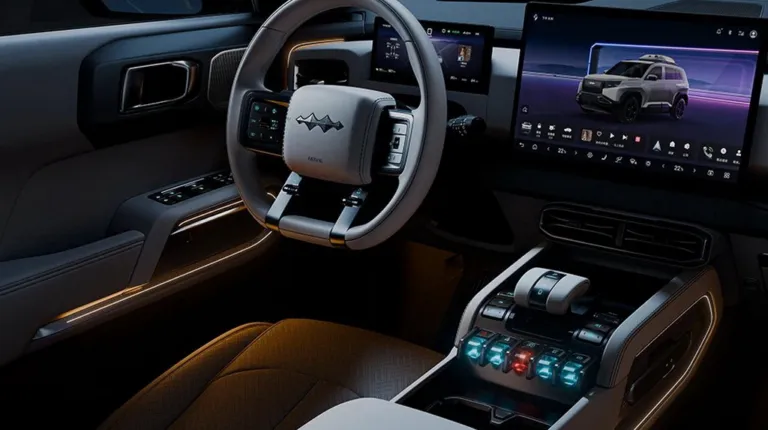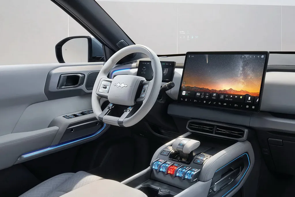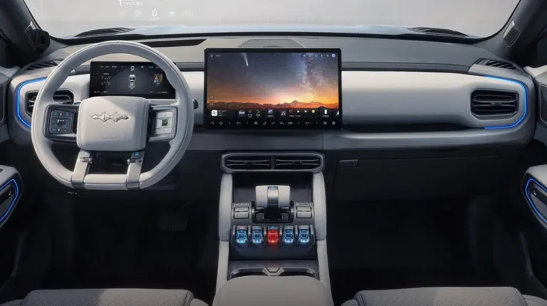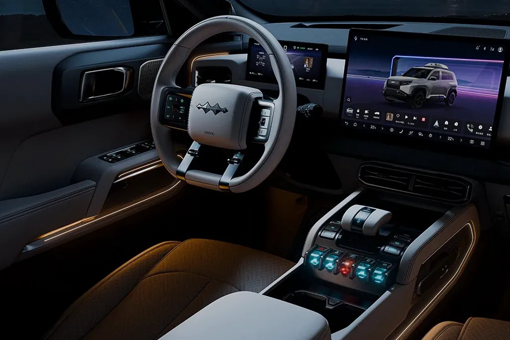 Салон Leopard 3 продуман так, чтобы водитель сразу чувствовал себя в автомобиле нового поколения. Большой центральный дисплей, полностью цифровая приборная панель, минимализм в кнопках и интерфейсах — все это создает ощущение современности и технологичности.