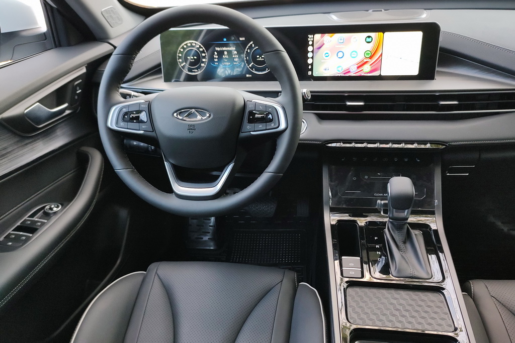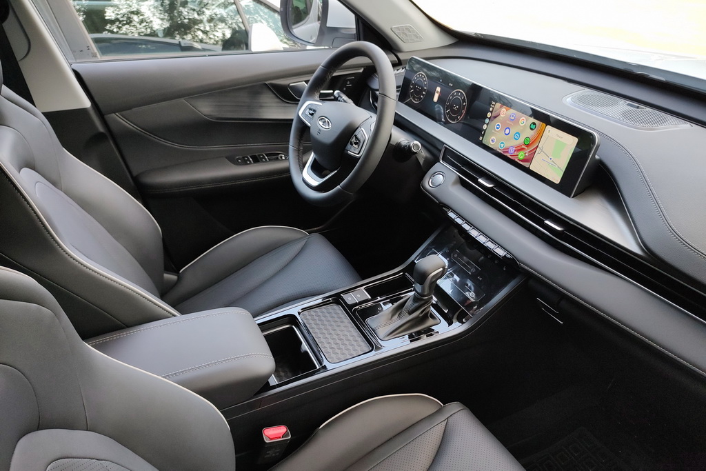 Материалы отделки смотрятся убедительно: перфорированная экокожа, вставки «под алюминий» и мягкий пластик формируют уютную атмосферу. Для зимы предусмотрен подогрев сидений, рулевого колеса и даже лобового стекла. Однако не обошлось без мелких нюансов — некоторые Android-смартфоны не помещаются в нишу для беспроводного подключения, хотя iPhone входят идеально.