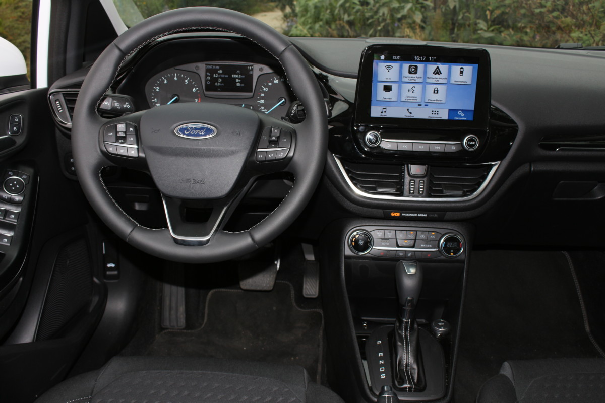 Помните россыпь мелких кнопок на торпедо, приборы, спрятанные в причудливые колодцы, разноцветные исполнения приборной панели? Новая Fiesta внутри – кардинально другая.