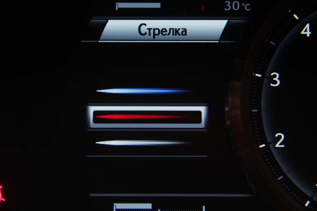 Индикатор давления наддува здорово вписывается в дизайн щитка приборов. Его фишка в том, что циферблат тахометра можно чисто физически сдвигать как слайдер.