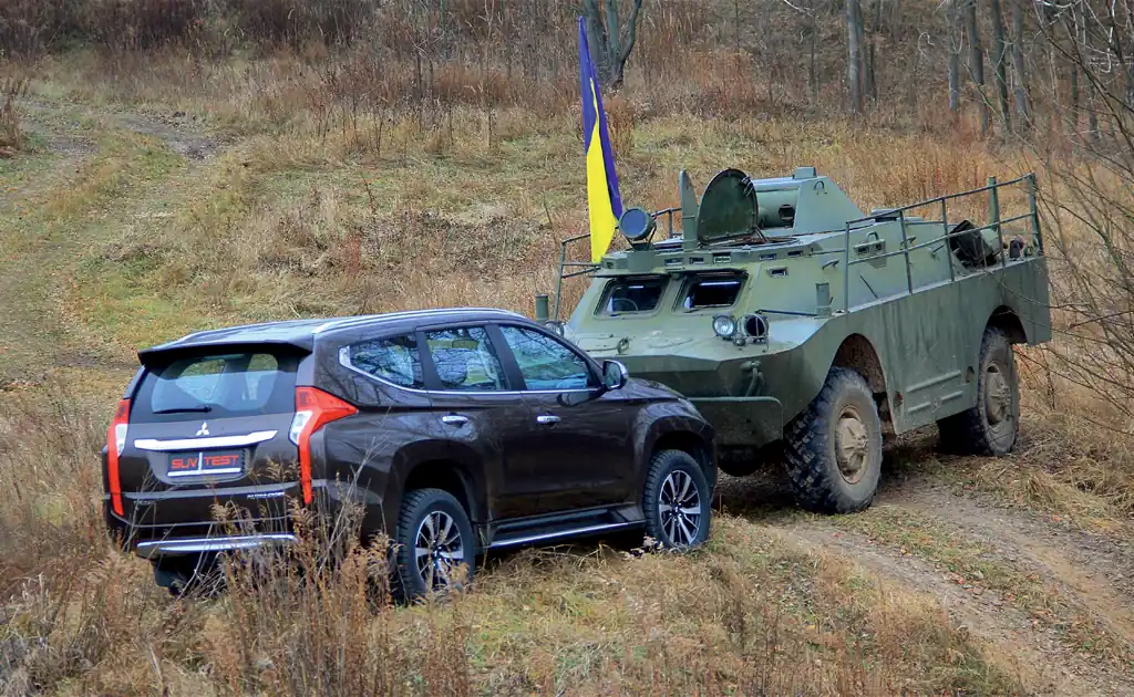 Например, боевой разведно-дозорной машины, известной как БРДМ-2. Клиренс 340 мм, два ведущих моста с редукторами – при прохождении этого сложного участка даже такой суровый водоплавающий транспорт в некоторых местах испытывает затруднения. Однако откатанная местными спецами трасса все же ложится под брюхо БРДМ, в то время как и мы, и Pajero Sport впервые видим суровые гребни и венец испытаний: холм с нереальным для спуска/подъема скатом. Однако отступать некуда – и тут на помощь приходит обновленная система полного привода Mitsubishi Super Select II.