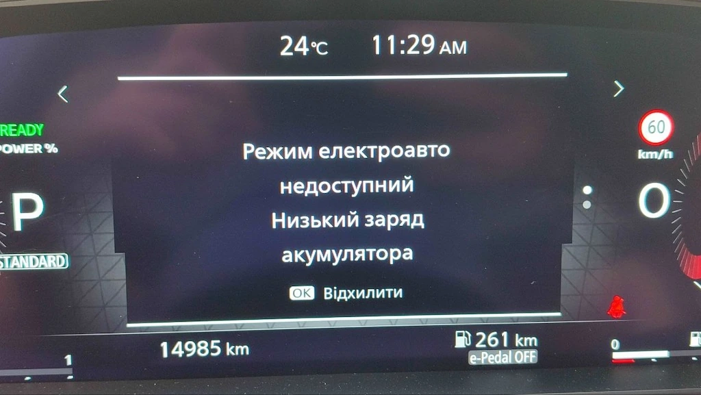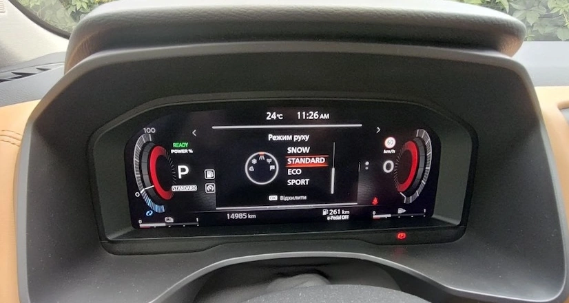 Но как по мне, то и у электромобилей X-Trail e-power тоже выигрывает. Ведь когда ездишь на X-Trail e-power, то пользуешься всеми преимуществами электромобильности: высокий крутящий момент без привязки к оборотам двигателя, хорошая динамика ускорения и тихая работа. Да, иногда тишину нарушает двигатель внутреннего сгорания, но не на долго и совсем не громко. А в чем преимущество над «электричками»? Пользуясь этим гибридным кроссовером я совсем не беспокоюсь о отключениях электроэнергии. К тому же мой гибрид получает полный бак топлива в минуту и дает запас хода до 900 км на одной такой «зарядке». Бам! 2:0 в пользу последовательного гибрида.